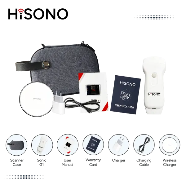 Purchase the HiSONO® Sonic G1 handheld ultrasound device and unlock advanced diagnostic capabilities, including: 7 imaging modes, 15 body markers, and 17 presets to simplify your workflow. Here are included with your mobile ultrasound: